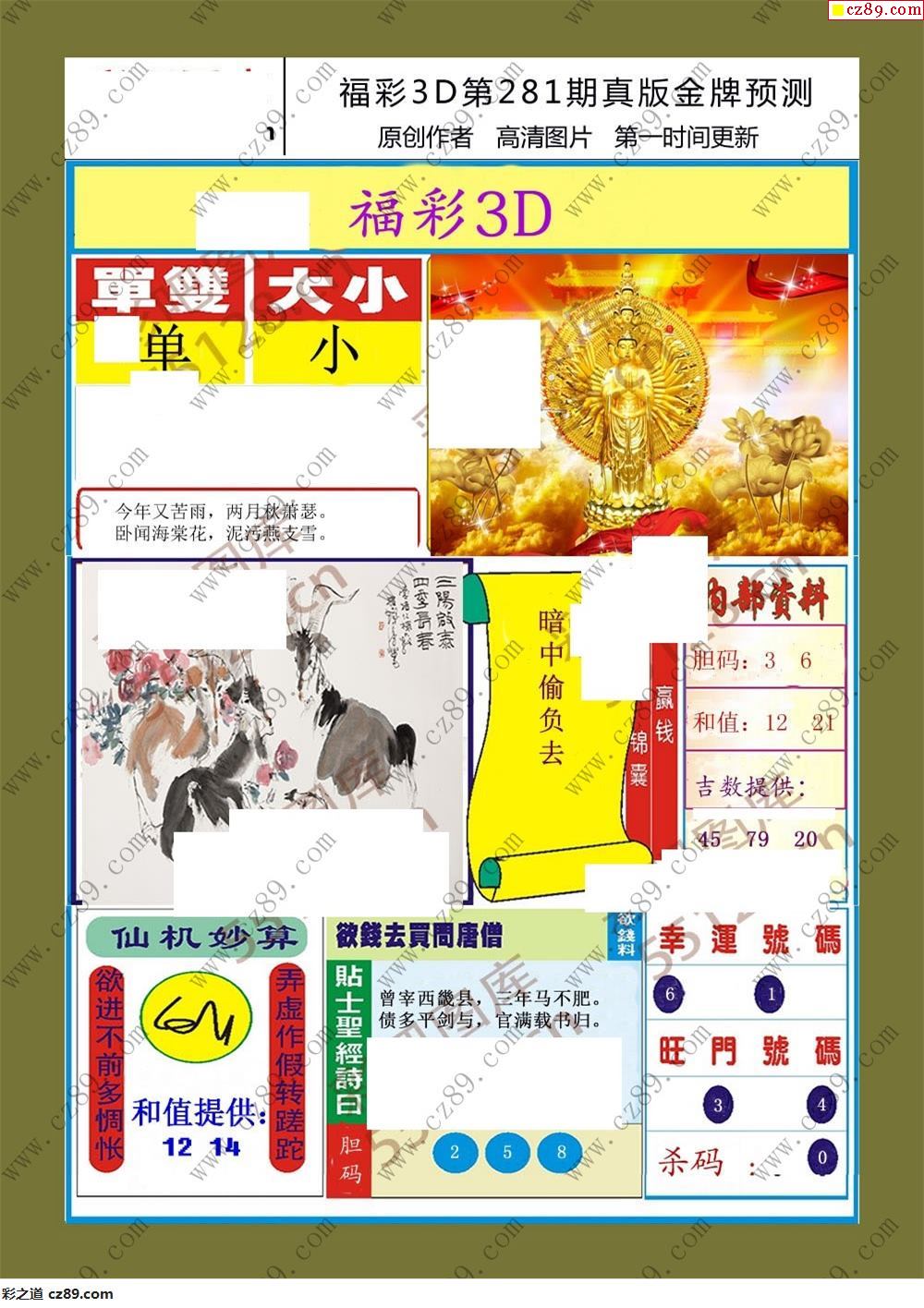 > 25年281期福彩3d真版金牌预测彩报